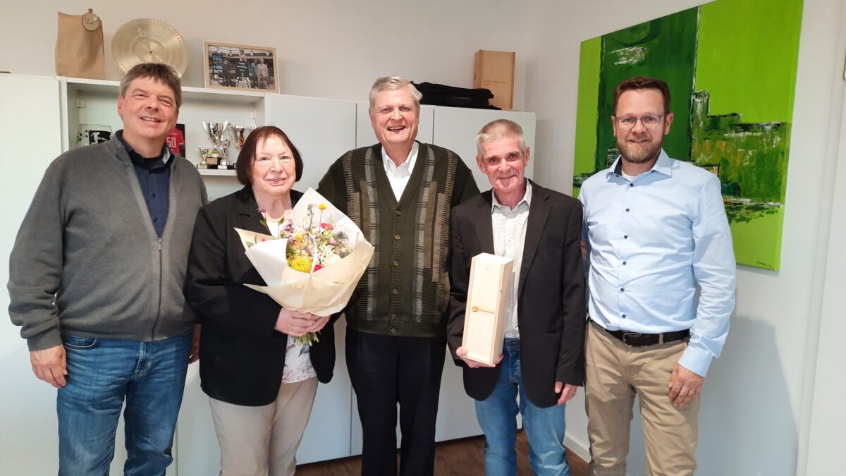 Dank für langjährige Unterstützung (v.l.n.r.): Geschäftsführer Hans-Josef Scholl, Sigrid Morsch, Hermann Scharf (1. Vorsitzender), Gerhard Ospelt und Geschäftsführer Peter Schön.